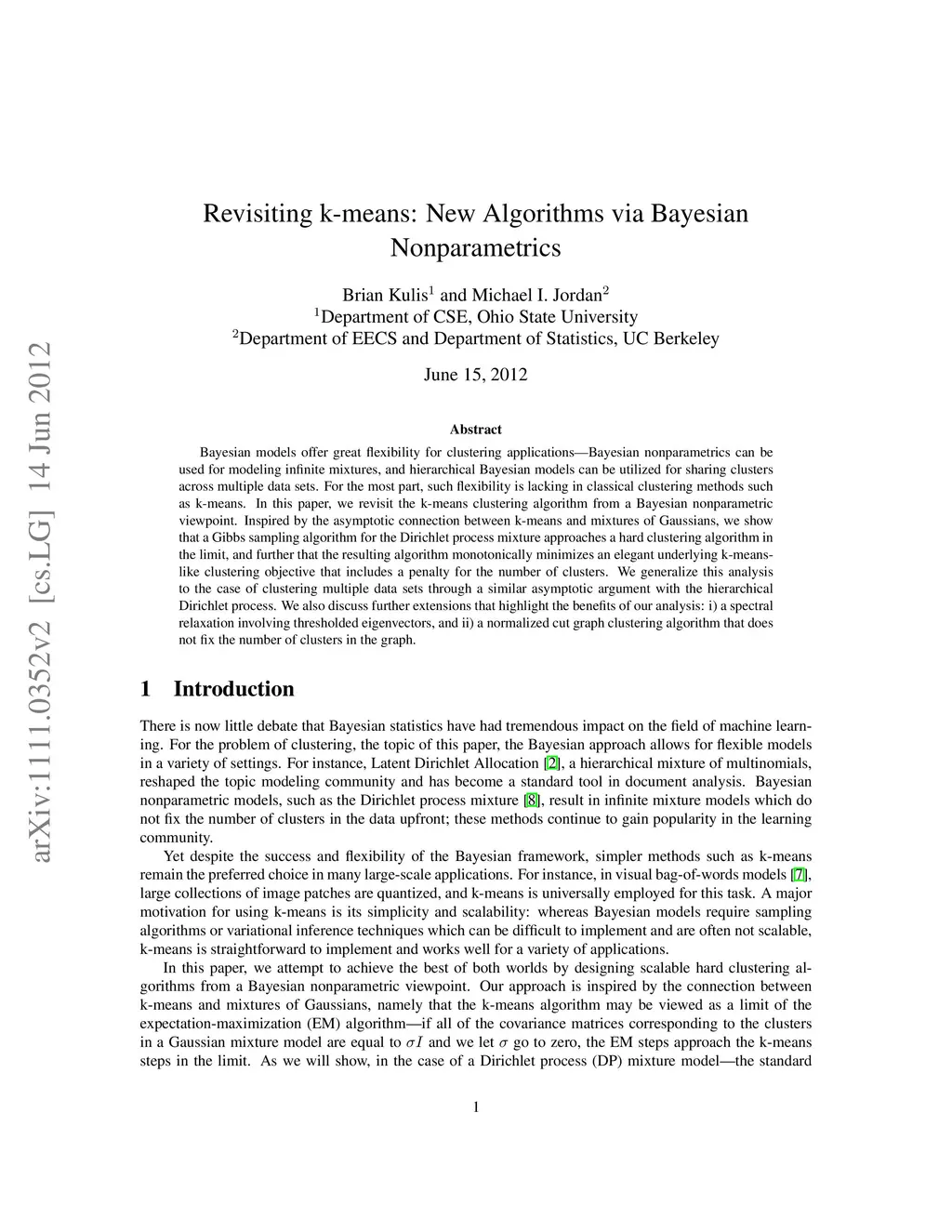 Revisiting k-means: New Algorithms via Bayesian Nonparametrics