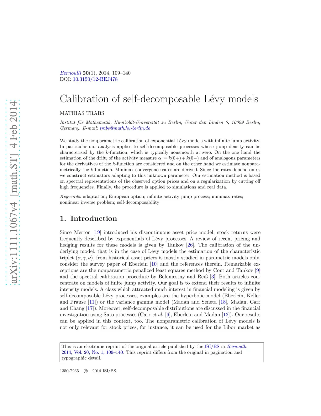 We study the nonparametric calibration of exponential L\'{e}vy models with infinite jump activity. In particular our analysis applies to self-decomposable processes whose jump density can be characterized by the -function, which is typically nonsmooth at zero. On the one hand the estimation of the drift, of the activity measure and of analogous parameters for the derivatives of the -function are considered and on the other hand we estimate nonparametrically the -function. Minimax convergence rates are derived. Since the rates depend on , we construct estimators adapting to this unknown parameter. Our estimation method is based on spectral representations of the observed option prices and on a regularization by cutting off high frequencies. Finally, the procedure is applied to simulations and real data.