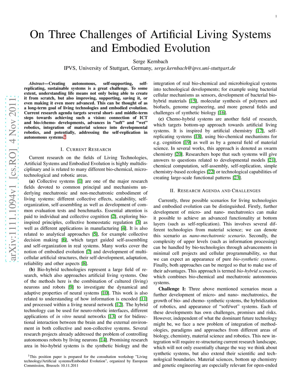 On Three Challenges of Artificial Living Systems and Embodied Evolution