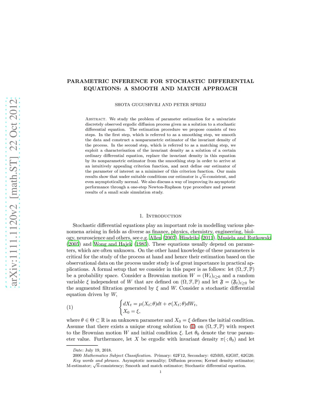 Parametric inference for stochastic differential equations: a smooth and