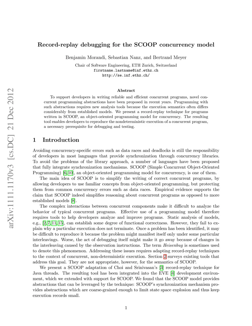To support developers in writing reliable and efficient concurrent programs, novel concurrent programming abstractions have been proposed in recent years. Programming with such abstractions requires new analysis tools because the execution semantics often differs considerably from established models. We present a record-replay technique for programs written in SCOOP, an object-oriented programming model for concurrency. The resulting tool enables developers to reproduce the nondeterministic execution of a concurrent program, a necessary prerequisite for debugging and testing.