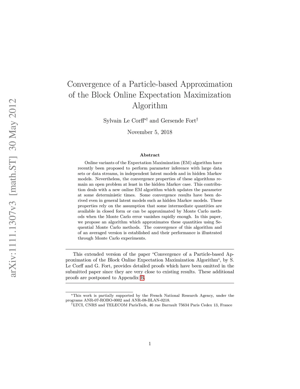 Online variants of the Expectation Maximization (EM) algorithm have recently been proposed to perform parameter inference with large data sets or data streams, in independent latent models and in hidden Markov models. Nevertheless, the convergence properties of these algorithms remain an open problem at least in the hidden Markov case. This contribution deals with a new online EM algorithm which updates the parameter at some deterministic times. Some convergence results have been derived even in general latent models such as hidden Markov models. These properties rely on the assumption that some intermediate quantities are available in closed form or can be approximated by Monte Carlo methods when the Monte Carlo error vanishes rapidly enough. In this paper, we propose an algorithm which approximates these quantities using Sequential Monte Carlo methods. The convergence of this algorithm and of an averaged version is established and their performance is illustrated through Monte Carlo experiments.