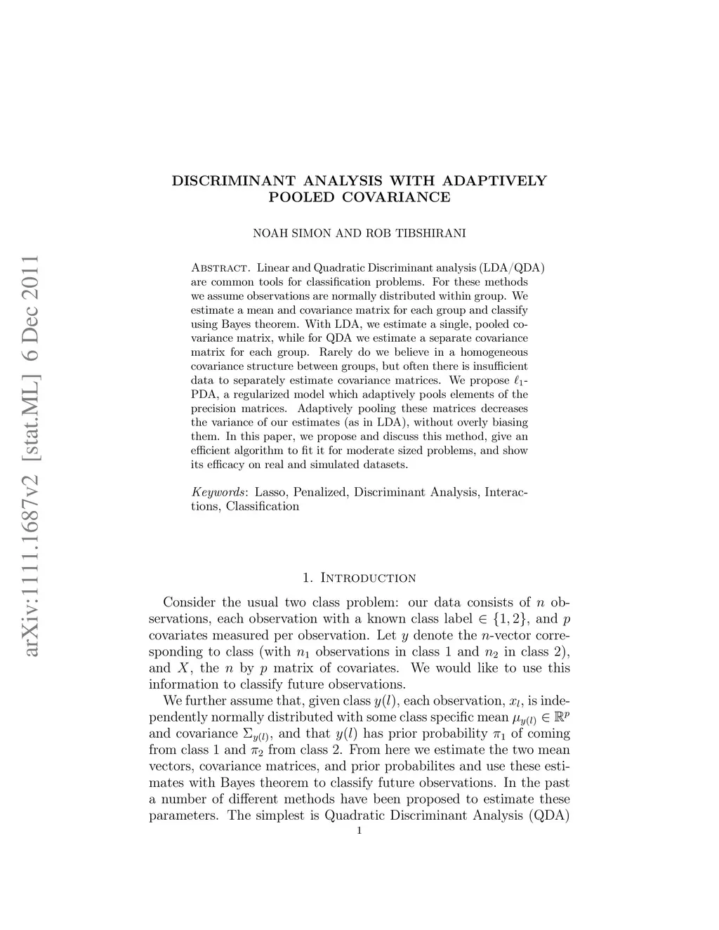 Linear and Quadratic Discriminant analysis (LDA/QDA) are common tools for classification problems. For these methods we assume observations are normally distributed within group. We estimate a mean and covariance matrix for each group and classify using Bayes theorem. With LDA, we estimate a single, pooled covariance matrix, while for QDA we estimate a separate covariance matrix for each group. Rarely do we believe in a homogeneous covariance structure between groups, but often there is insufficient data to separately estimate covariance matrices. We propose L1- PDA, a regularized model which adaptively pools elements of the precision matrices. Adaptively pooling these matrices decreases the variance of our estimates (as in LDA), without overly biasing them. In this paper, we propose and discuss this method, give an efficient algorithm to fit it for moderate sized problems, and show its efficacy on real and simulated datasets.