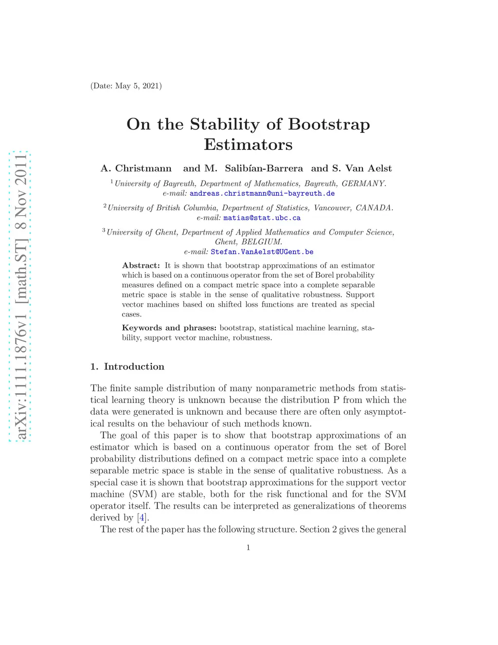 It is shown that bootstrap approximations of an estimator which is based on a continuous operator from the set of Borel probability measures defined on a compact metric space into a complete separable metric space is stable in the sense of qualitative robustness. Support vector machines based on shifted loss functions are treated as special cases.