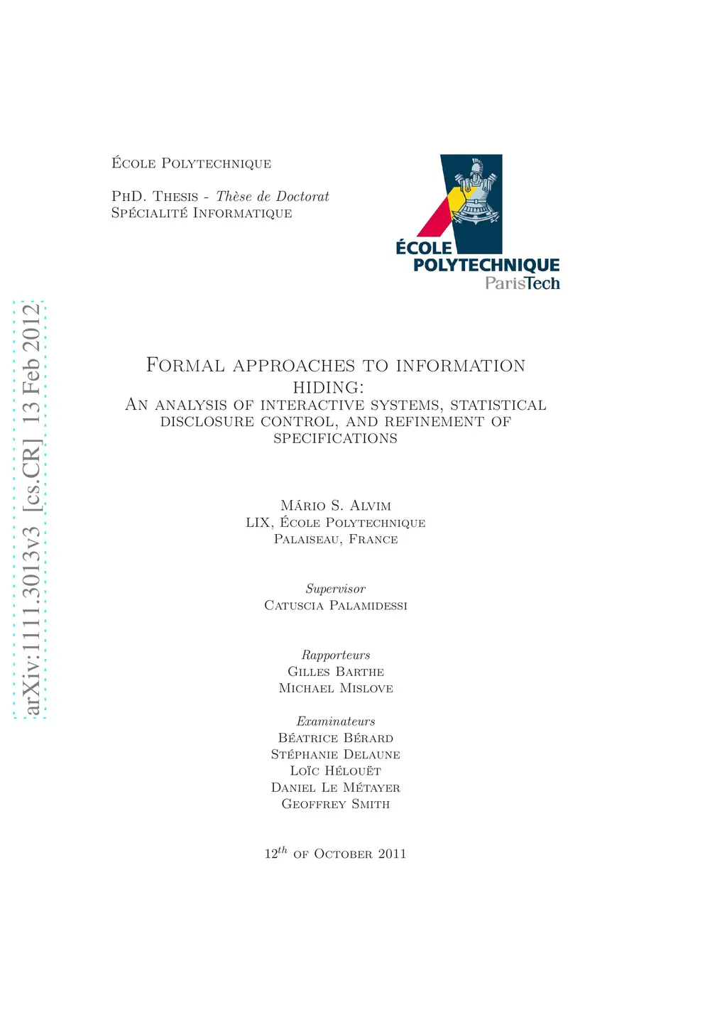 In this thesis we consider the problem of information hiding in the scenarios of interactive systems, statistical disclosure control, and refinement of specifications. We apply quantitative approaches to information flow in the first two cases, and we propose improvements for the usual solutions based on process equivalences for the third case. In the first scenario we consider the problem of defining the information leakage in interactive systems where secrets and observables can alternate during the computation and influence each other. We show that the information-theoretic approach which interprets such systems as (simple) noisy channels is not valid. The principle can be recovered if we consider channels with memory and feedback. We also propose the use of directed information from input to output as the real measure of leakage in interactive systems. In the second scenario we consider the problem of statistical disclosure control, which concerns how to reveal accurate statistics about a set of respondents while preserving the privacy of individuals. We focus on the concept of differential privacy, a notion that has become very popular in the database community. We show how to model the query system in terms of an information-theoretic channel, and we compare the notion of differential privacy with that of min-entropy leakage.In the third scenario we address the problem of using process equivalences to characterize information-hiding properties. We show that, in the presence of nondeterminism, this approach may rely on the assumption that the scheduler "works for the benefit of the protocol", and this is often not a safe assumption. We present a formalism in which we can specify admissible schedulers and, correspondingly, safe versions of complete-trace equivalence and bisimulation, and we show that safe equivalences can be used to establish information-hiding properties.