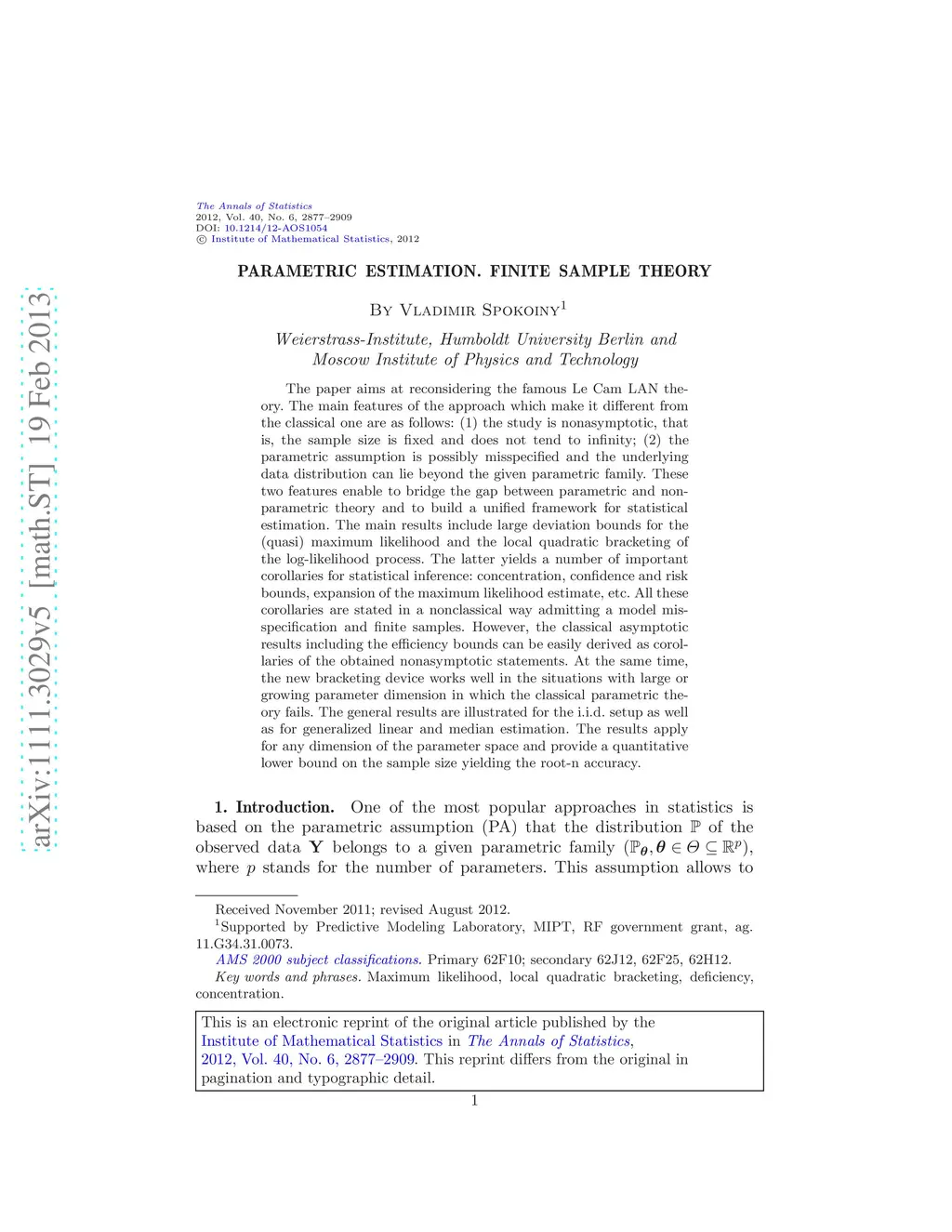 Parametric estimation. Finite sample theory