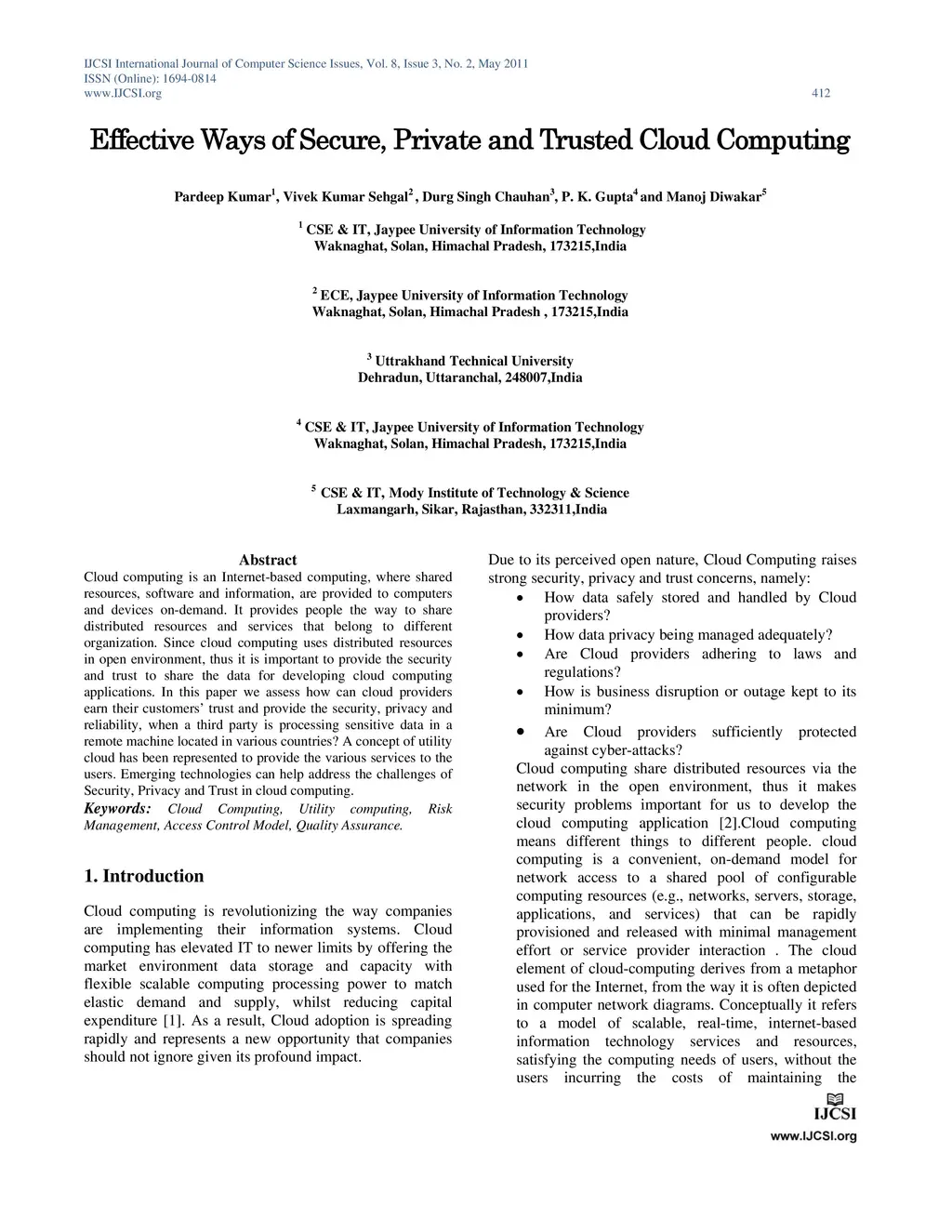 Effective Ways of Secure, Private and Trusted Cloud Computing