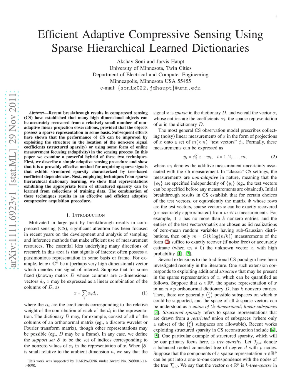 Efficient Adaptive Compressive Sensing Using Sparse Hierarchical Learned
