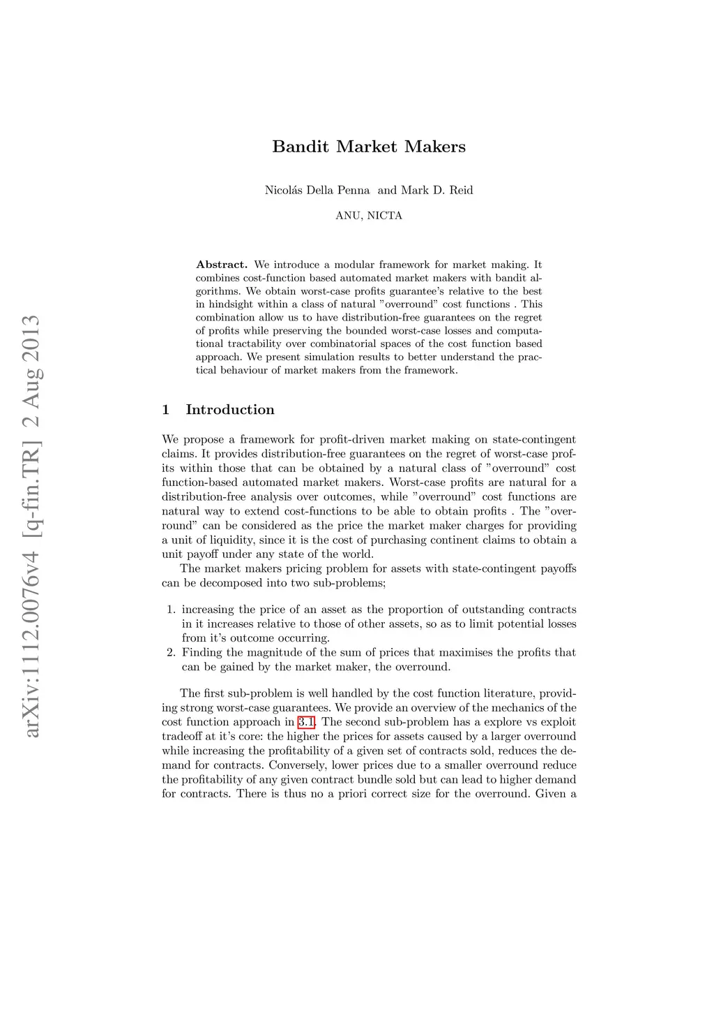 We introduce a modular framework for market making. It combines cost-function based automated market makers with bandit algorithms. We obtain worst-case profits guarantee's relative to the best in hindsight within a class of natural "overround" cost functions . This combination allow us to have distribution-free guarantees on the regret of profits while preserving the bounded worst-case losses and computational tractability over combinatorial spaces of the cost function based approach. We present simulation results to better understand the practical behaviour of market makers from the framework.