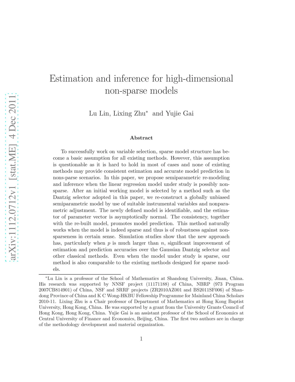 To successfully work on variable selection, sparse model structure has become a basic assumption for all existing methods. However, this assumption is questionable as it is hard to hold in most of cases and none of existing methods may provide consistent estimation and accurate model prediction in nons-parse scenarios. In this paper, we propose semiparametric re-modeling and inference when the linear regression model under study is possibly non-sparse. After an initial working model is selected by a method such as the Dantzig selector adopted in this paper, we re-construct a globally unbiased semiparametric model by use of suitable instrumental variables and nonparametric adjustment. The newly defined model is identifiable, and the estimator of parameter vector is asymptotically normal. The consistency, together with the re-built model, promotes model prediction. This method naturally works when the model is indeed sparse and thus is of robustness against non-sparseness in certain sense. Simulation studies show that the new approach has, particularly when is much larger than , significant improvement of estimation and prediction accuracies over the Gaussian Dantzig selector and other classical methods. Even when the model under study is sparse, our method is also comparable to the existing methods designed for sparse models.