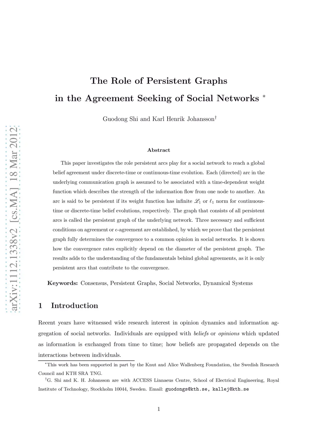 This paper investigates the role persistent arcs play for a social network to reach a global belief agreement under discrete-time or continuous-time evolution. Each (directed) arc in the underlying communication graph is assumed to be associated with a time-dependent weight function which describes the strength of the information flow from one node to another. An arc is said to be persistent if its weight function has infinite or norm for continuous-time or discrete-time belief evolutions, respectively. The graph that consists of all persistent arcs is called the persistent graph of the underlying network. Three necessary and sufficient conditions on agreement or -agreement are established, by which we prove that the persistent graph fully determines the convergence to a common opinion in social networks. It is shown how the convergence rates explicitly depend on the diameter of the persistent graph. The results adds to the understanding of the fundamentals behind global agreements, as it is only persistent arcs that contribute to the convergence.