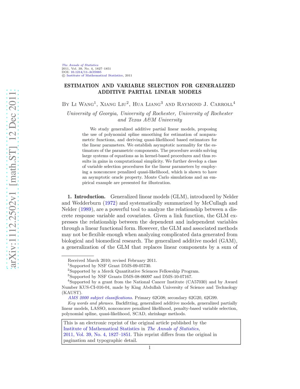Annals of Statistics (Ann. Stat.), 2011