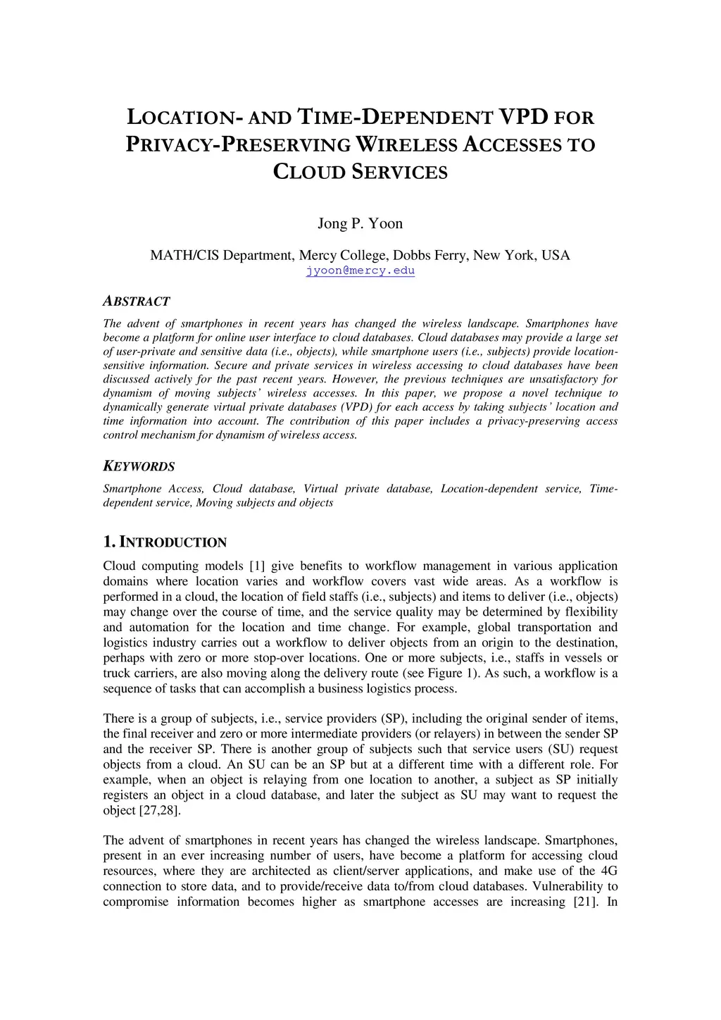 The advent of smartphones in recent years has changed the wireless landscape. Smartphones have become a platform for online user interface to cloud databases. Cloud databases may provide a large set of user-private and sensitive data (i.e., objects), while smartphone users (i.e., subjects) provide location-sensitive information. Secure and private services in wireless accessing to cloud databases have been discussed actively for the past recent years. However, the previous techniques are unsatisfactory for dynamism of moving subjects' wireless accesses. In this paper, we propose a novel technique to dynamically generate virtual private databases (VPD) for each access by taking subjects' location and time information into account. The contribution of this paper includes a privacy-preserving access control mechanism for dynamism of wireless access.