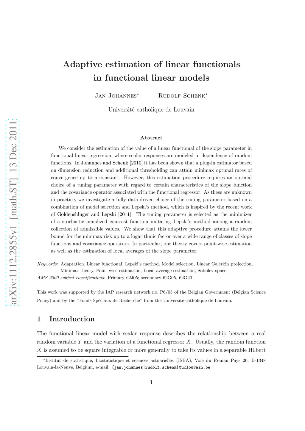 We consider the estimation of the value of a linear functional of the slope parameter in functional linear regression, where scalar responses are modeled in dependence of random functions. In Johannes and Schenk [2010] it has been shown that a plug-in estimator based on dimension reduction and additional thresholding can attain minimax optimal rates of convergence up to a constant. However, this estimation procedure requires an optimal choice of a tuning parameter with regard to certain characteristics of the slope function and the covariance operator associated with the functional regressor. As these are unknown in practice, we investigate a fully data-driven choice of the tuning parameter based on a combination of model selection and Lepski's method, which is inspired by the recent work of Goldenshluger and Lepski [2011]. The tuning parameter is selected as the minimizer of a stochastic penalized contrast function imitating Lepski's method among a random collection of admissible values. We show that this adaptive procedure attains the lower bound for the minimax risk up to a logarithmic factor over a wide range of classes of slope functions and covariance operators. In particular, our theory covers point-wise estimation as well as the estimation of local averages of the slope parameter.