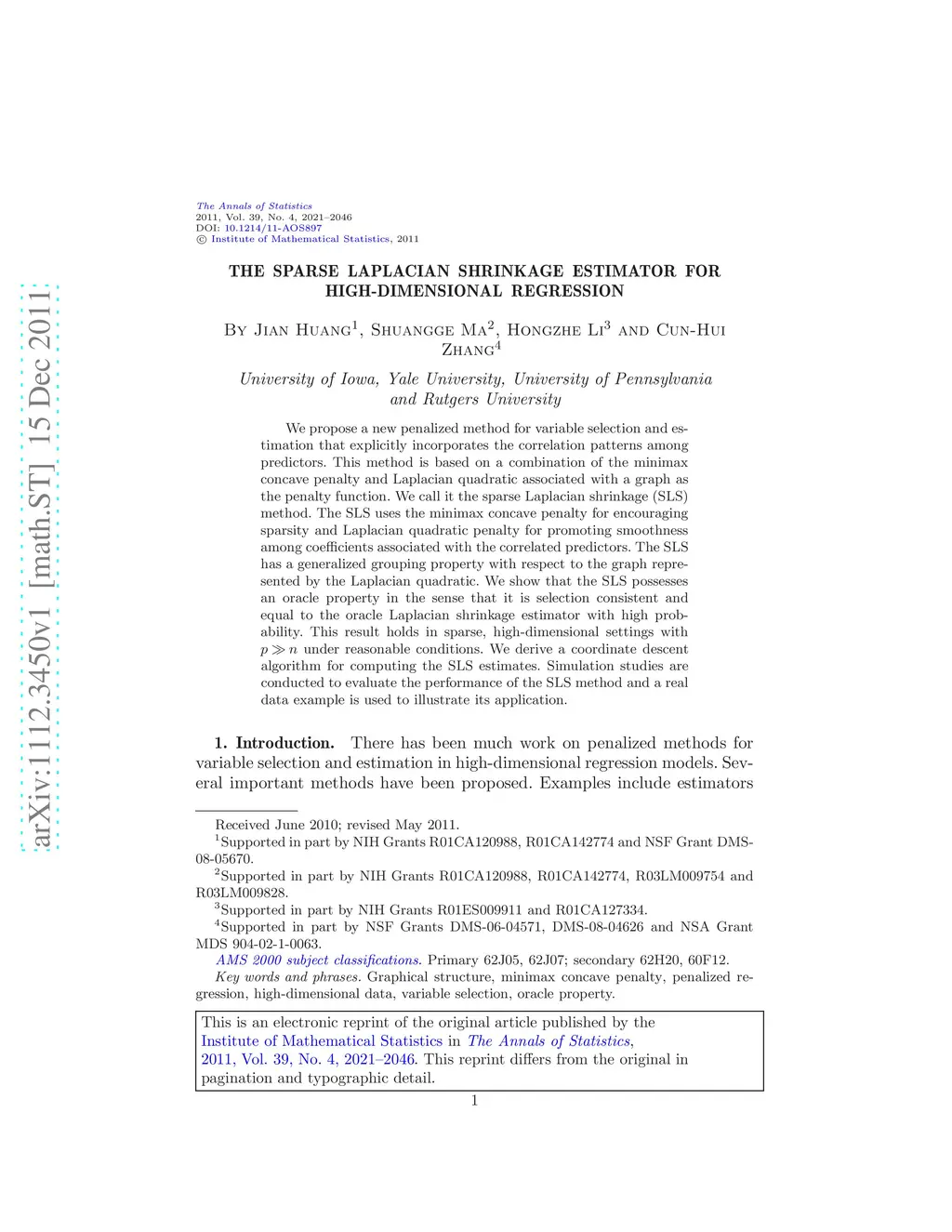 The sparse Laplacian shrinkage estimator for high-dimensional regression