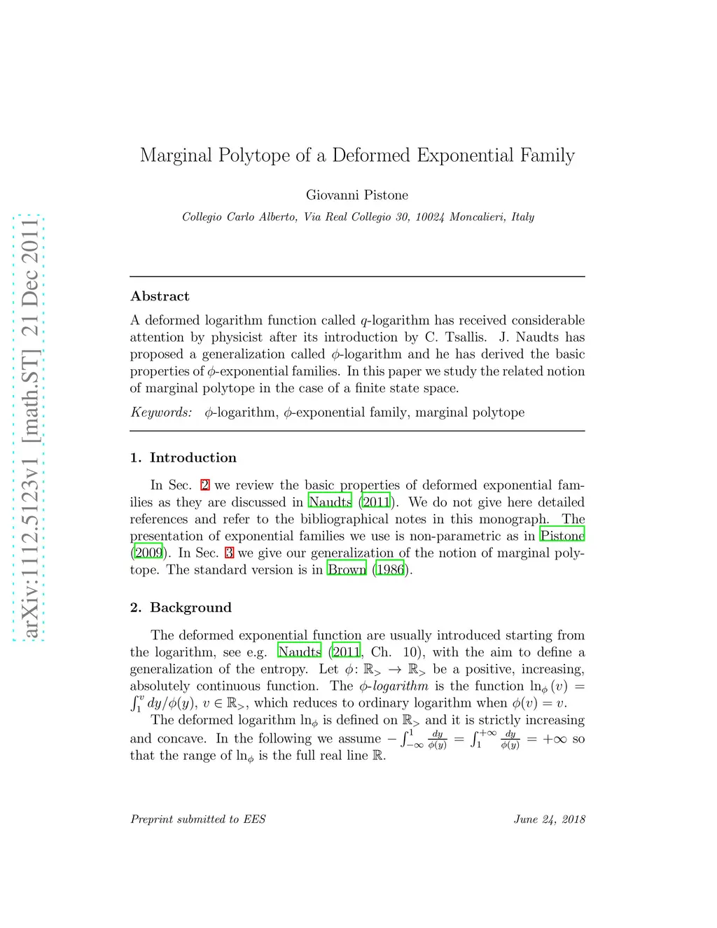 A deformed logarithm function called -logarithm has received considerable attention by physicist after its introduction by C. Tsallis. J. Naudts has proposed a generalization called -logarithm and he has derived the basic properties of -exponential families. In this paper we study the related notion of marginal polytope in the case of a finite state space.