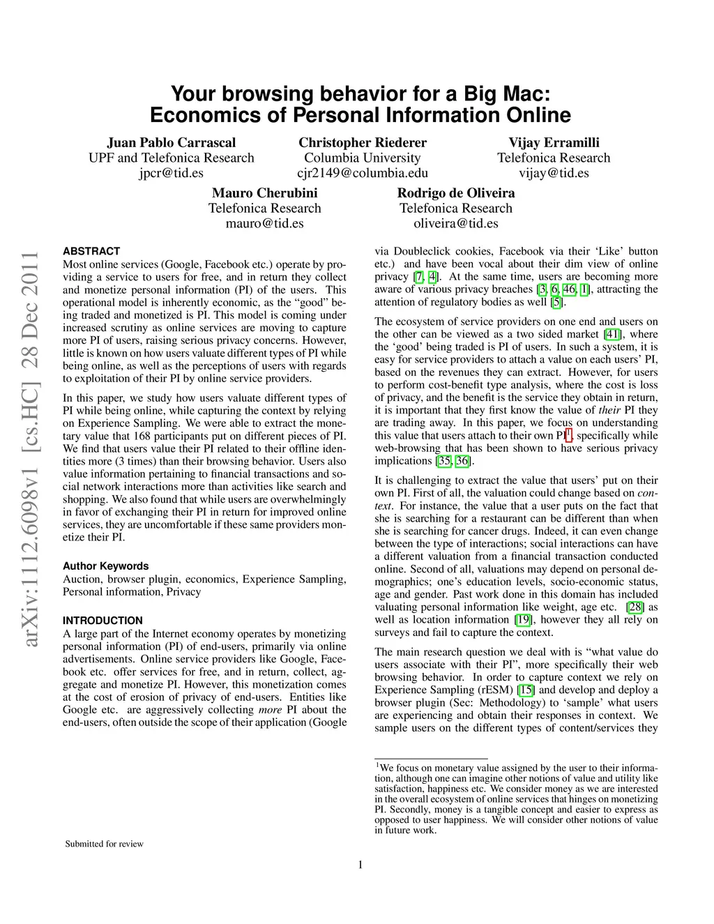 Your browsing behavior for a Big Mac: Economics of Personal Information
