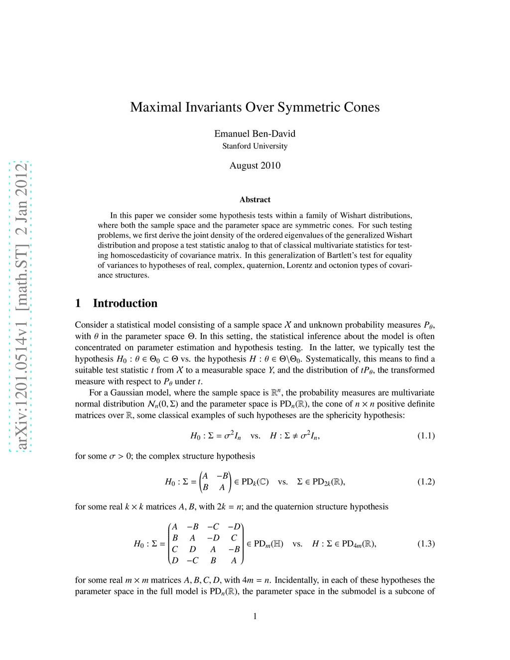 Maximal Invariants Over Symmetric Cones
