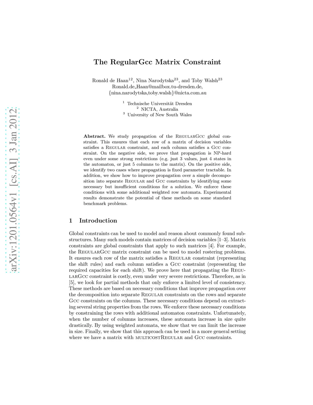 The RegularGcc Matrix Constraint