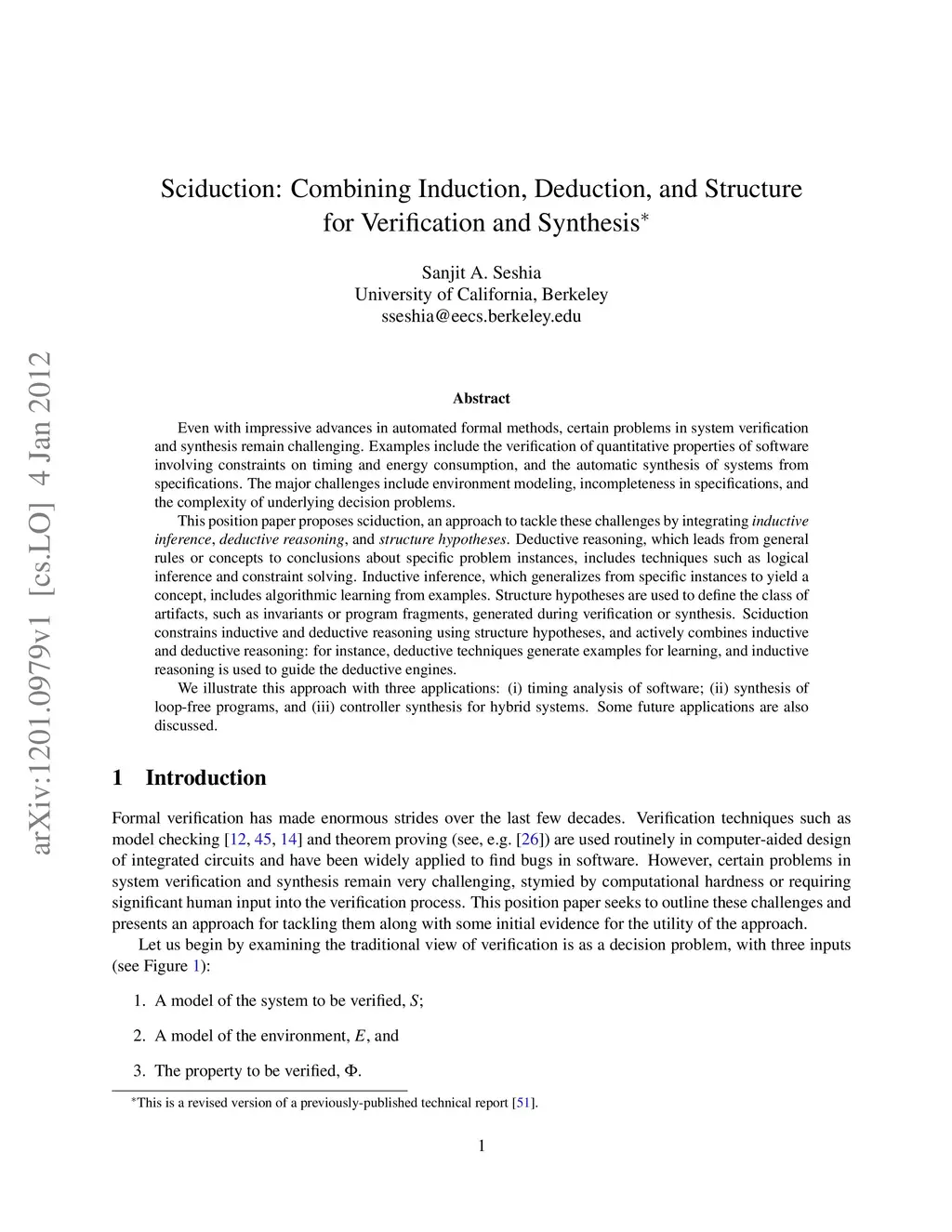 Sciduction: Combining Induction, Deduction, and Structure for