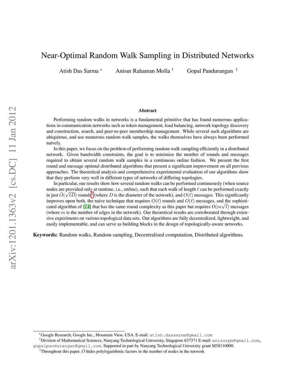 Near-Optimal Random Walk Sampling in Distributed Networks