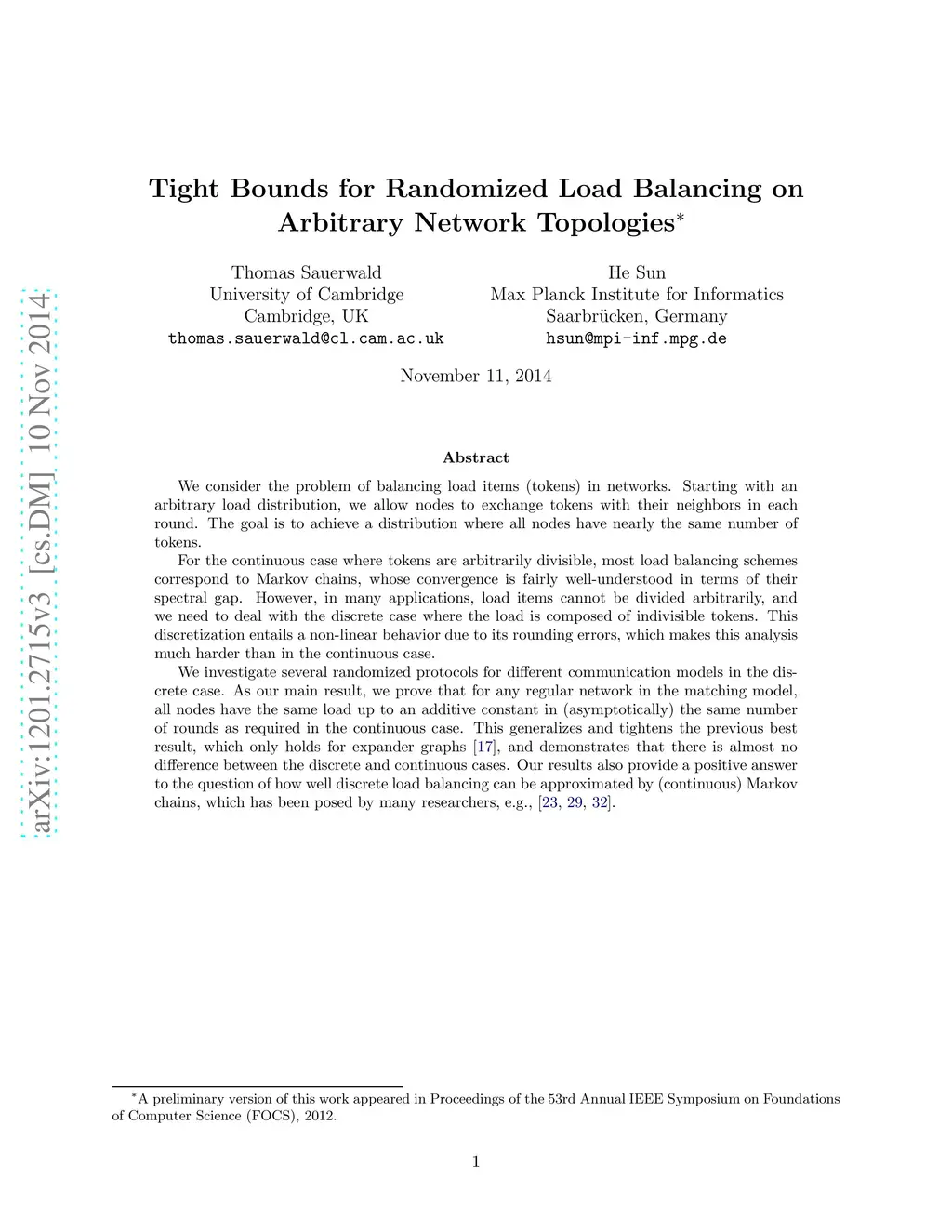 Tight Bounds for Randomized Load Balancing on Arbitrary Network