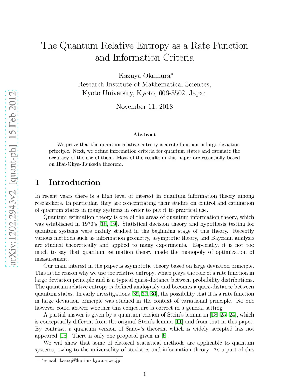 The Quantum Relative Entropy as a Rate Function and Information Criteria
