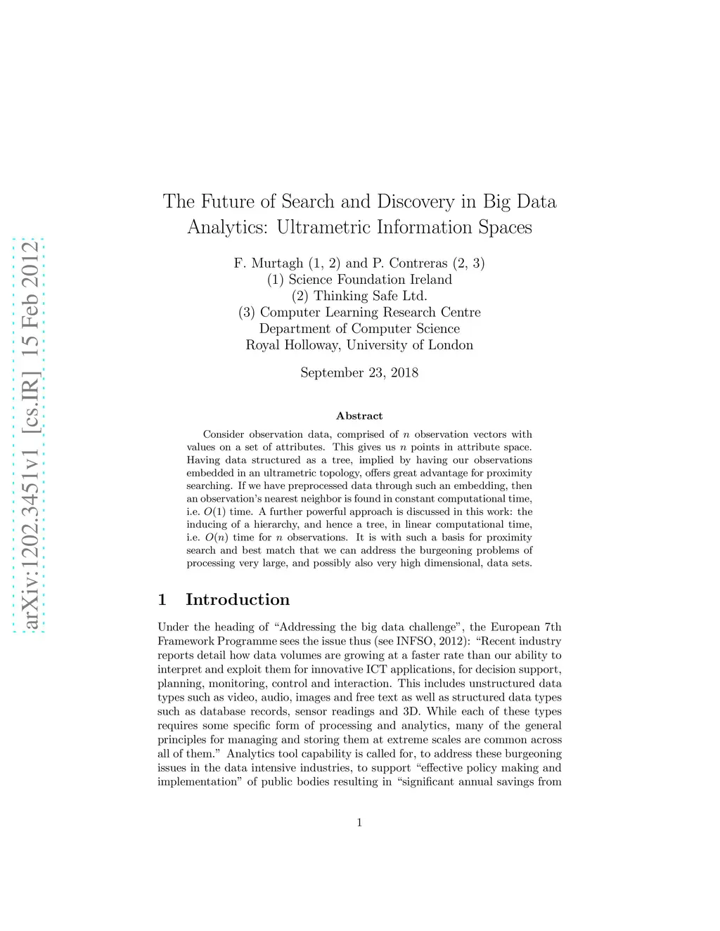 The Future of Search and Discovery in Big Data Analytics: Ultrametric
