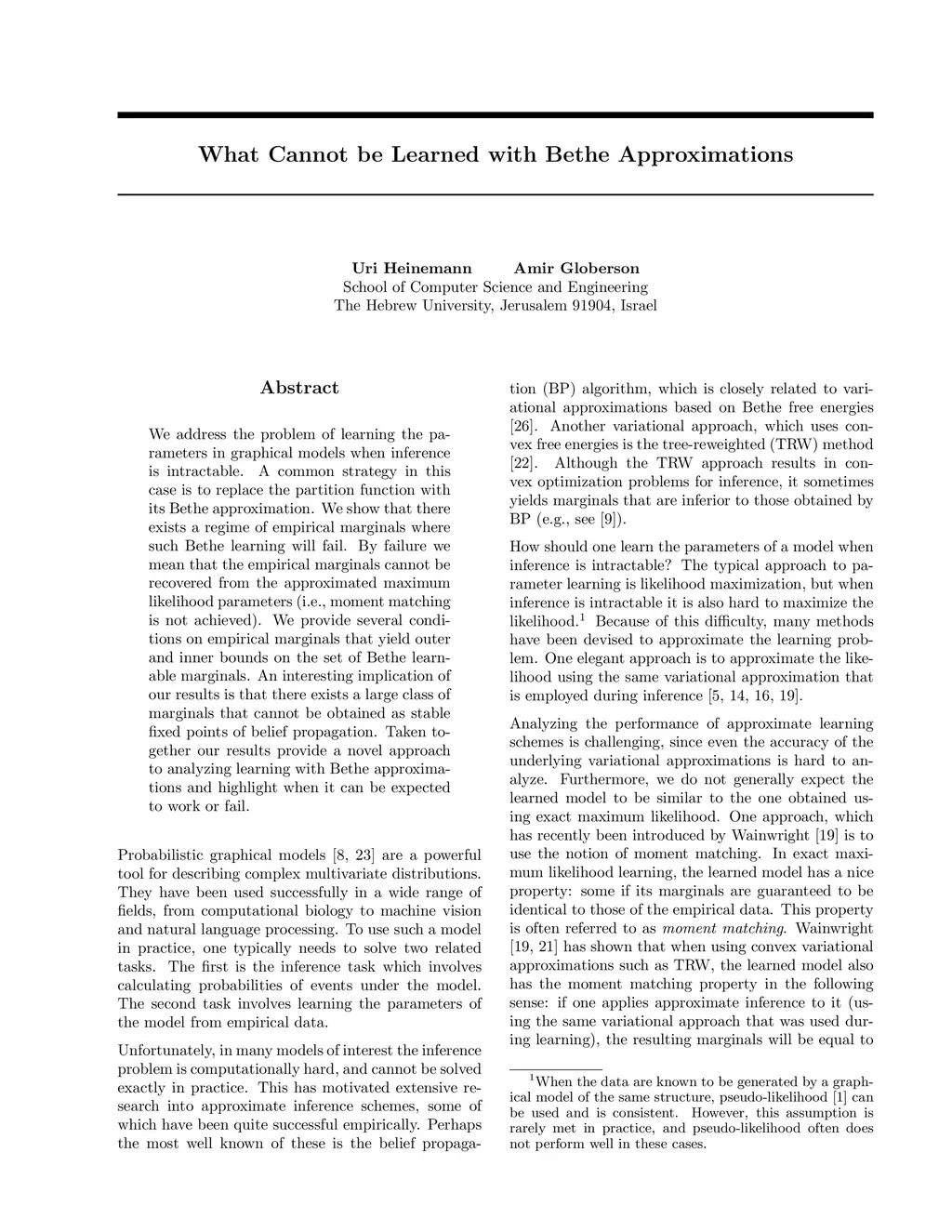 What Cannot be Learned with Bethe Approximations
