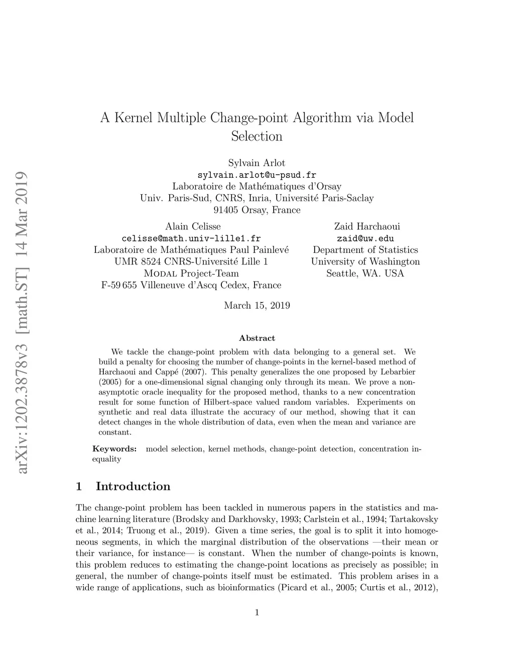 A Kernel Multiple Change-point Algorithm via Model Selection