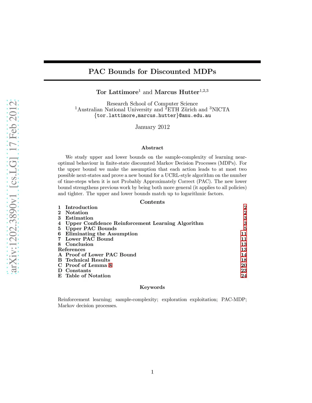 PAC Bounds for Discounted MDPs