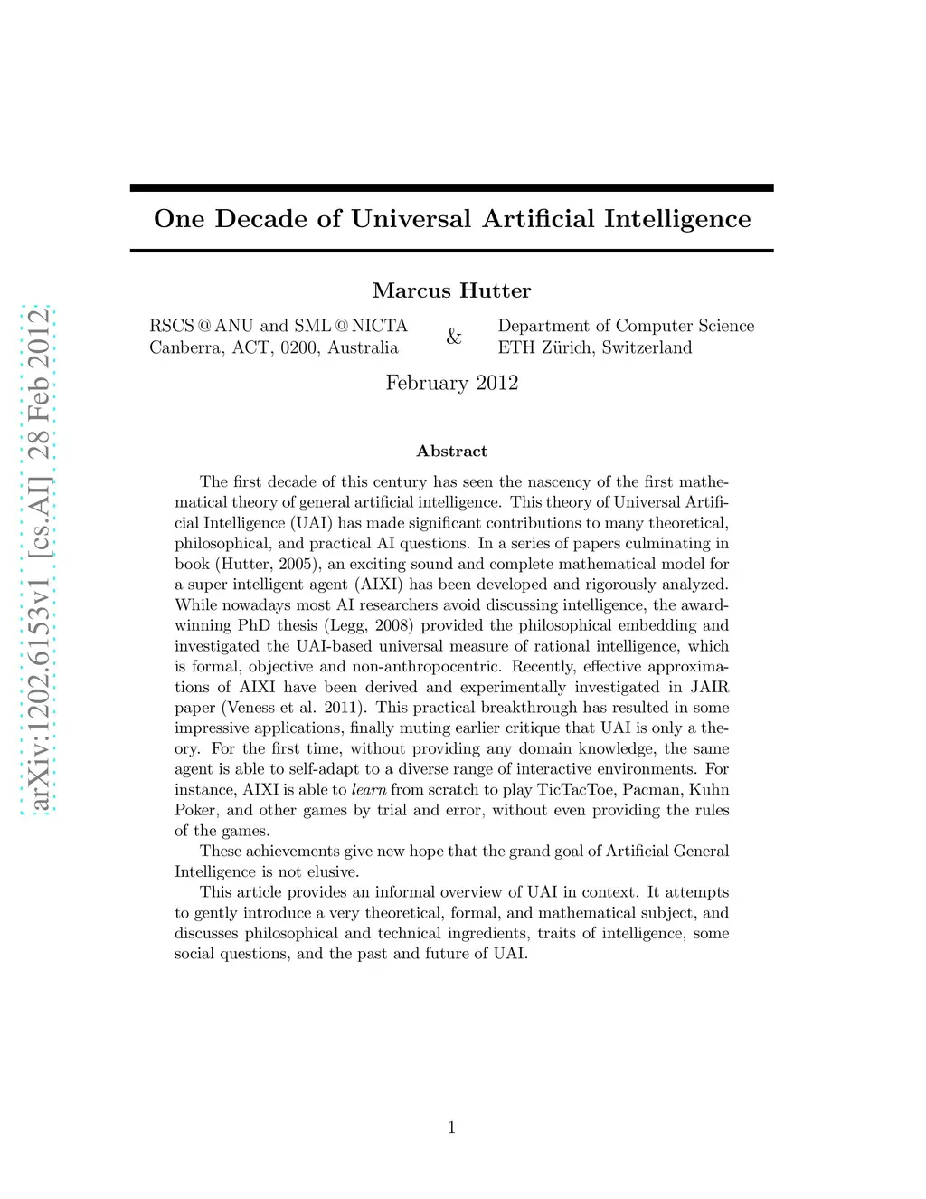 One Decade of Universal Artificial Intelligence