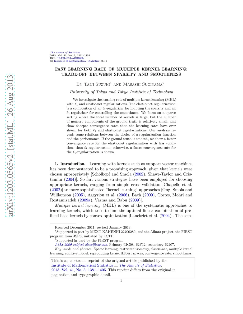 We investigate the learning rate of multiple kernel learning (MKL) with and elastic-net regularizations. The elastic-net regularization is a composition of an -regularizer for inducing the sparsity and an -regularizer for controlling the smoothness. We focus on a sparse setting where the total number of kernels is large, but the number of nonzero components of the ground truth is relatively small, and show sharper convergence rates than the learning rates have ever shown for both and elastic-net regularizations. Our analysis reveals some relations between the choice of a regularization function and the performance. If the ground truth is smooth, we show a faster convergence rate for the elastic-net regularization with less conditions than -regularization; otherwise, a faster convergence rate for the -regularization is shown.
