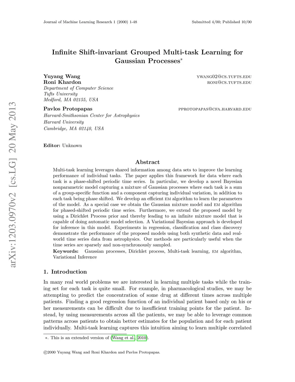 Infinite Shift-invariant Grouped Multi-task Learning for Gaussian