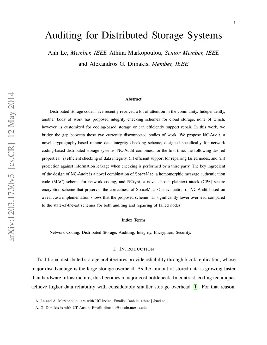 Auditing for Distributed Storage Systems