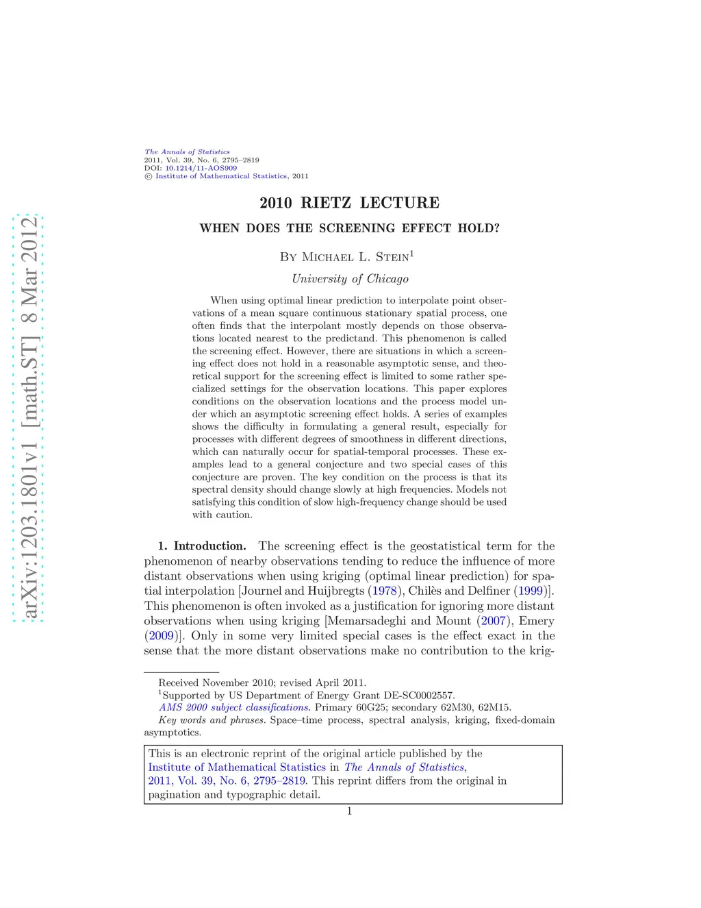 When using optimal linear prediction to interpolate point observations of a mean square continuous stationary spatial process, one often finds that the interpolant mostly depends on those observations located nearest to the predictand. This phenomenon is called the screening effect. However, there are situations in which a screening effect does not hold in a reasonable asymptotic sense, and theoretical support for the screening effect is limited to some rather specialized settings for the observation locations. This paper explores conditions on the observation locations and the process model under which an asymptotic screening effect holds. A series of examples shows the difficulty in formulating a general result, especially for processes with different degrees of smoothness in different directions, which can naturally occur for spatial-temporal processes. These examples lead to a general conjecture and two special cases of this conjecture are proven. The key condition on the process is that its spectral density should change slowly at high frequencies. Models not satisfying this condition of slow high-frequency change should be used with caution.