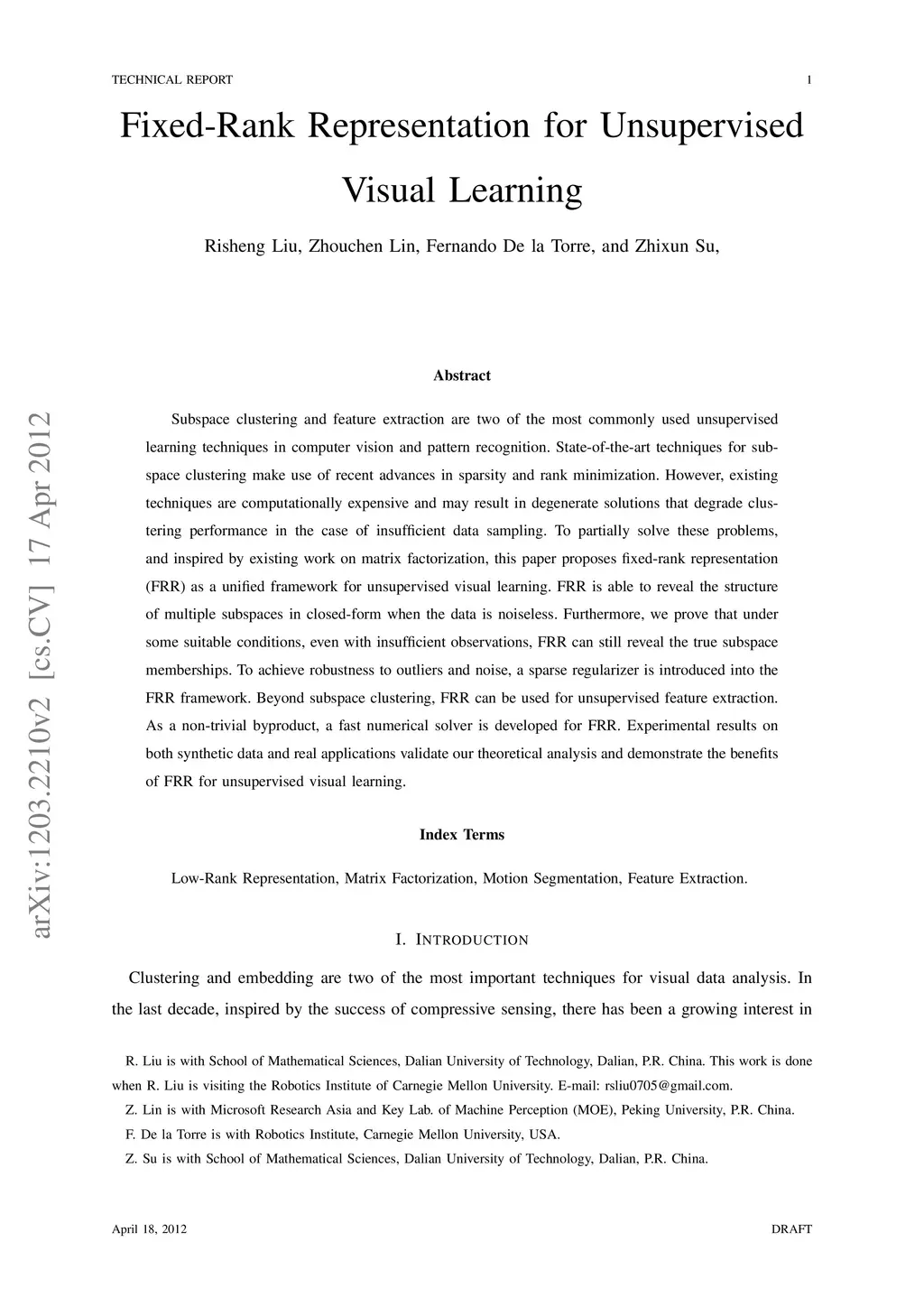 Fixed-Rank Representation for Unsupervised Visual Learning