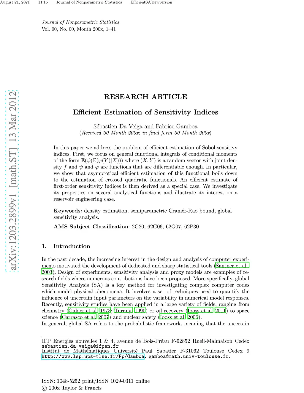 Efficient Estimation of Sensitivity Indices