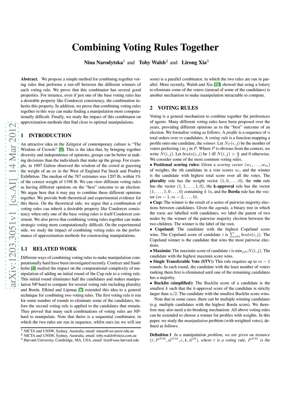 We propose a simple method for combining together voting rules that performs a run-off between the different winners of each voting rule. We prove that this combinator has several good properties. For instance, even if just one of the base voting rules has a desirable property like Condorcet consistency, the combination inherits this property. In addition, we prove that combining voting rules together in this way can make finding a manipulation more computationally difficult. Finally, we study the impact of this combinator on approximation methods that find close to optimal manipulations.