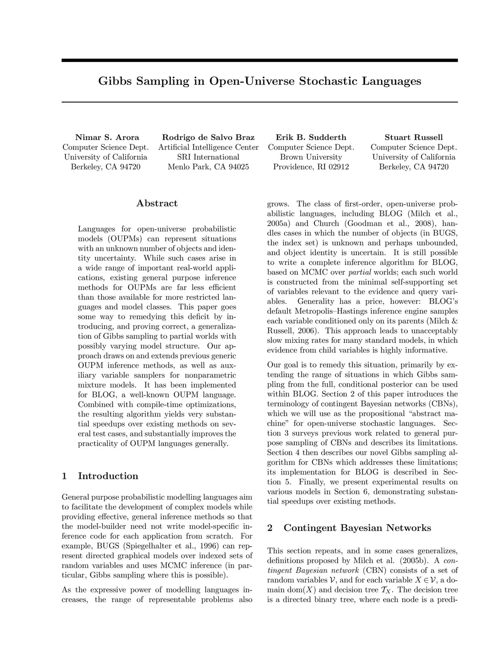 Languages for open-universe probabilistic models (OUPMs) can represent situations with an unknown number of objects and iden- tity uncertainty. While such cases arise in a wide range of important real-world appli- cations, existing general purpose inference methods for OUPMs are far less efficient than those available for more restricted lan- guages and model classes. This paper goes some way to remedying this deficit by in- troducing, and proving correct, a generaliza- tion of Gibbs sampling to partial worlds with possibly varying model structure. Our ap- proach draws on and extends previous generic OUPM inference methods, as well as aux- iliary variable samplers for nonparametric mixture models. It has been implemented for BLOG, a well-known OUPM language. Combined with compile-time optimizations, the resulting algorithm yields very substan- tial speedups over existing methods on sev- eral test cases, and substantially improves the practicality of OUPM languages generally.