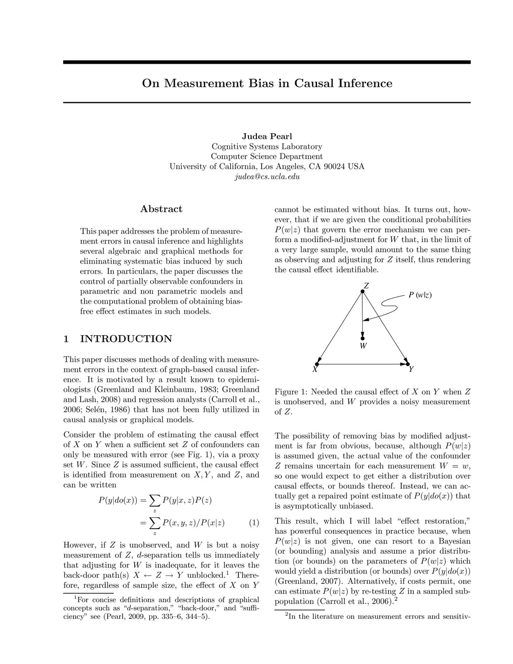 This paper addresses the problem of measurement errors in causal inference and highlights several algebraic and graphical methods for eliminating systematic bias induced by such errors. In particulars, the paper discusses the control of partially observable confounders in parametric and non parametric models and the computational problem of obtaining bias-free effect estimates in such models.