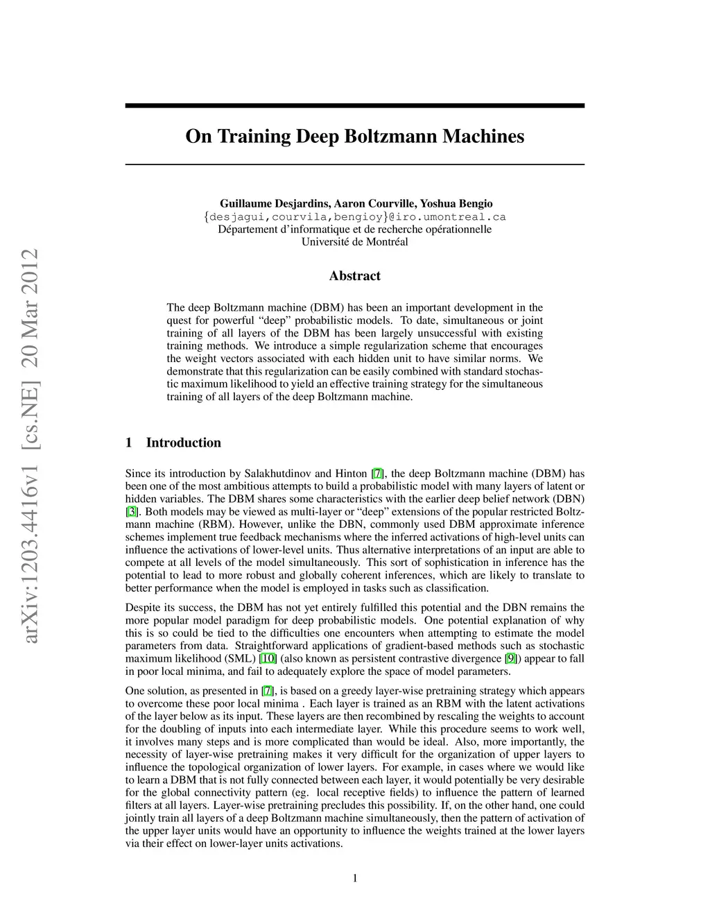 The deep Boltzmann machine (DBM) has been an important development in the quest for powerful "deep" probabilistic models. To date, simultaneous or joint training of all layers of the DBM has been largely unsuccessful with existing training methods. We introduce a simple regularization scheme that encourages the weight vectors associated with each hidden unit to have similar norms. We demonstrate that this regularization can be easily combined with standard stochastic maximum likelihood to yield an effective training strategy for the simultaneous training of all layers of the deep Boltzmann machine.