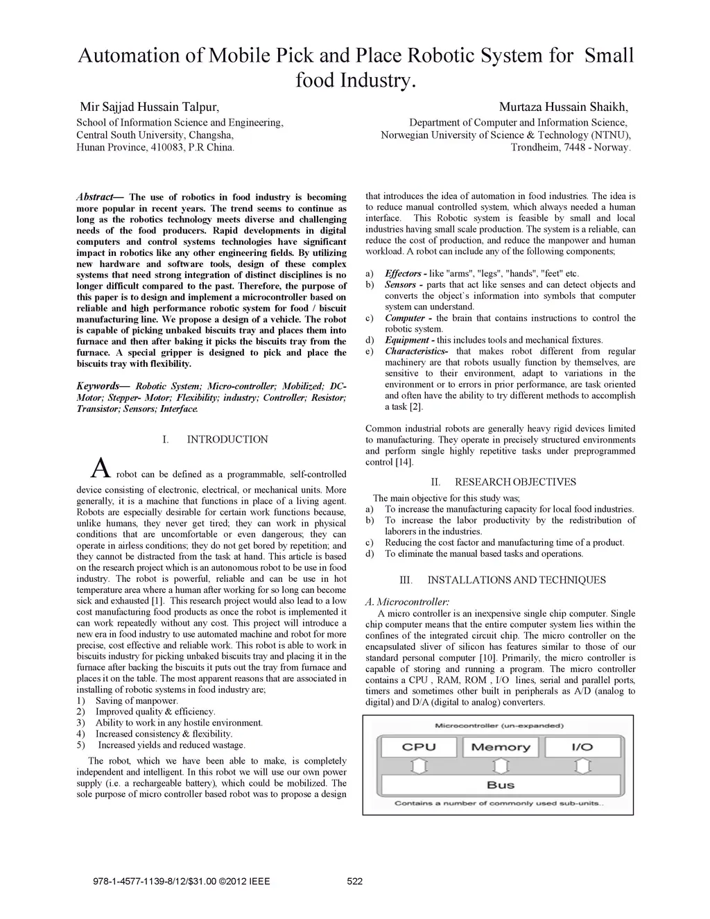 Automation of Mobile Pick and Place Robotic System for Small Food