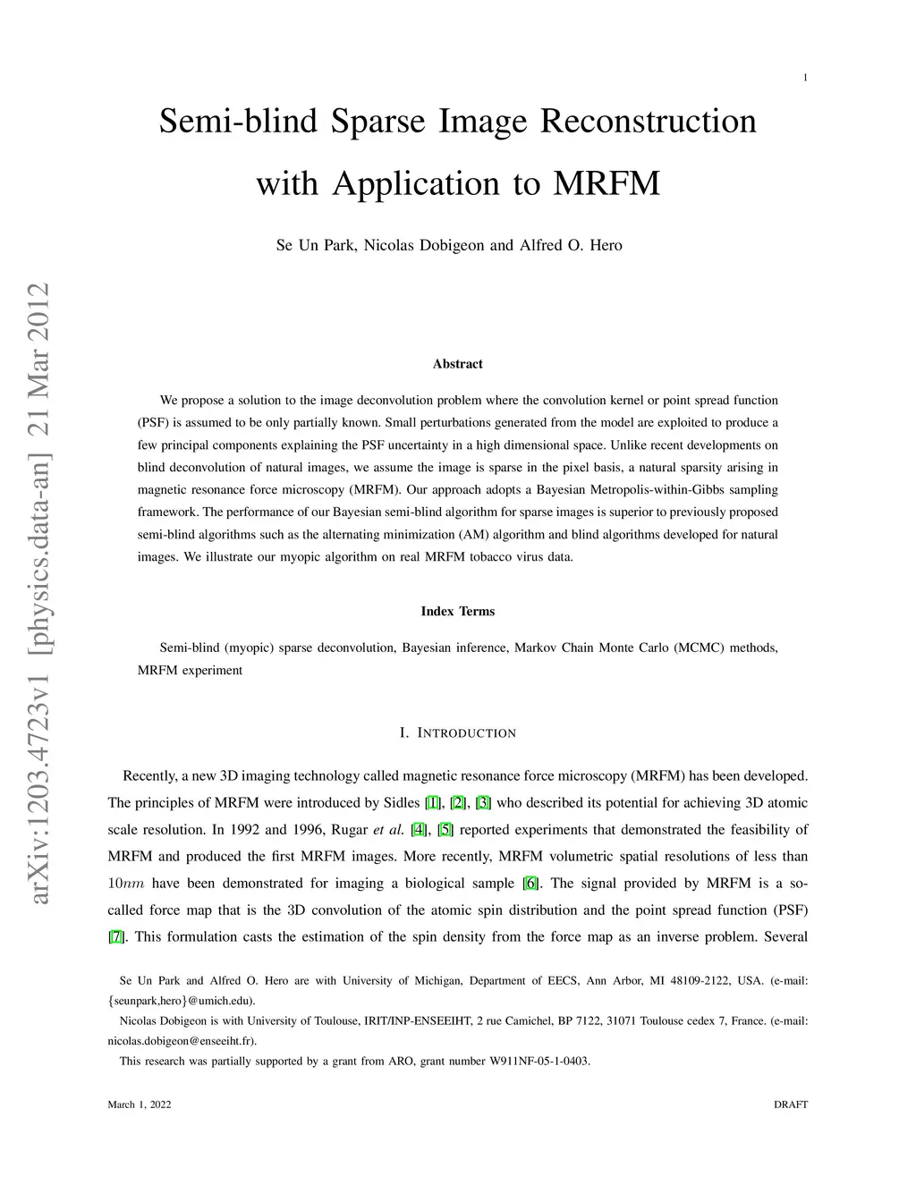 Semi-blind Sparse Image Reconstruction with Application to MRFM