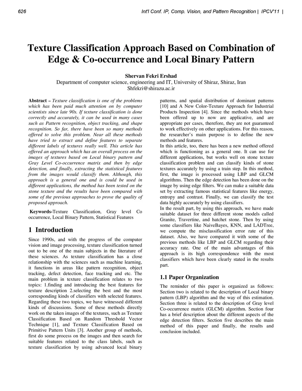 Texture classification is one of the problems which has been paid much attention on by computer scientists since late 90s. If texture classification is done correctly and accurately, it can be used in many cases such as Pattern recognition, object tracking, and shape recognition. So far, there have been so many methods offered to solve this problem. Near all these methods have tried to extract and define features to separate different labels of textures really well. This article has offered an approach which has an overall process on the images of textures based on Local binary pattern and Gray Level Co-occurrence matrix and then by edge detection, and finally, extracting the statistical features from the images would classify them. Although, this approach is a general one and is could be used in different applications, the method has been tested on the stone texture and the results have been compared with some of the previous approaches to prove the quality of proposed approach.