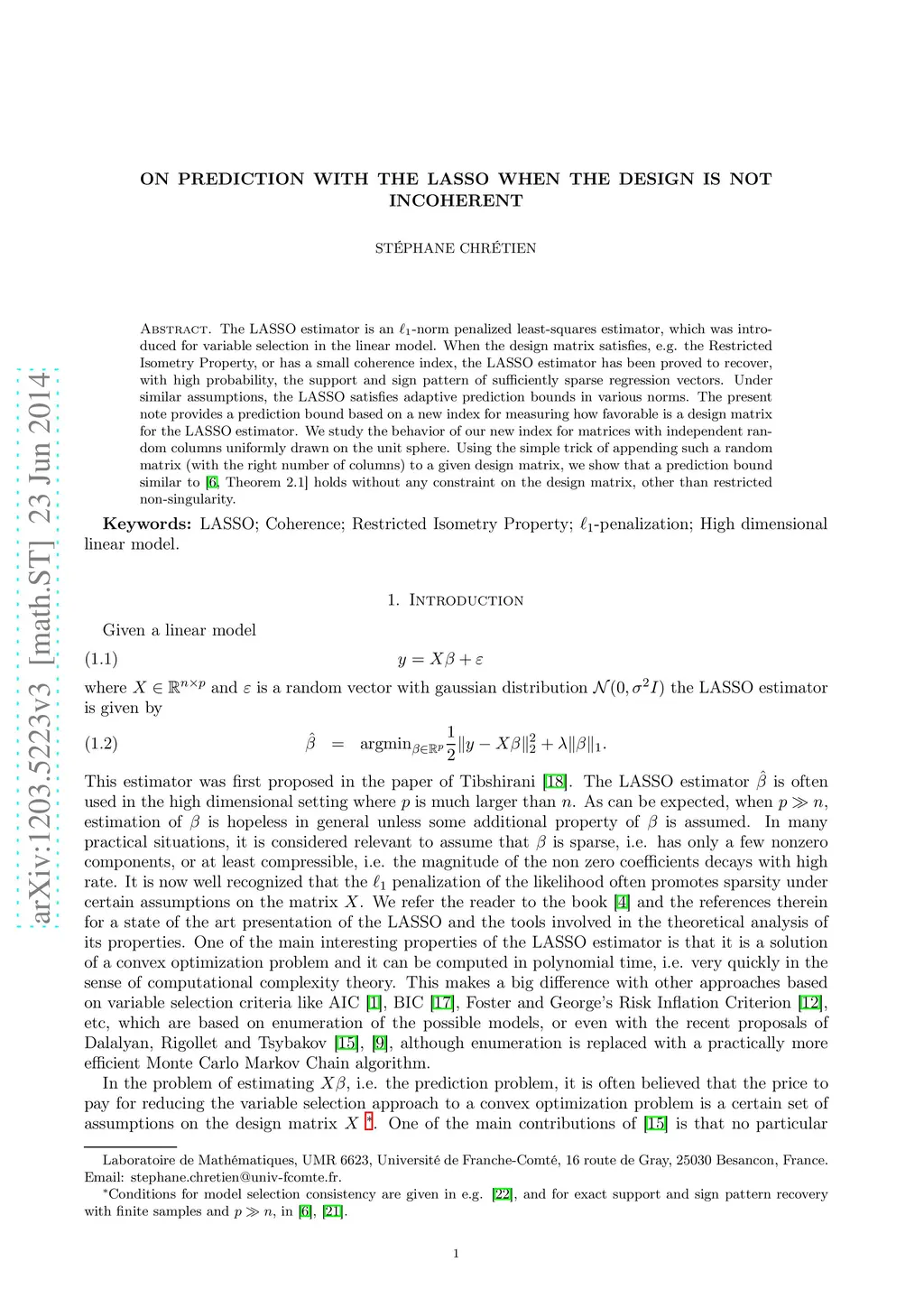 The LASSO estimator is an -norm penalized least-squares estimator, which was introduced for variable selection in the linear model. When the design matrix satisfies, e.g. the Restricted Isometry Property, or has a small coherence index, the LASSO estimator has been proved to recover, with high probability, the support and sign pattern of sufficiently sparse regression vectors. Under similar assumptions, the LASSO satisfies adaptive prediction bounds in various norms. The present note provides a prediction bound based on a new index for measuring how favorable is a design matrix for the LASSO estimator. We study the behavior of our new index for matrices with independent random columns uniformly drawn on the unit sphere. Using the simple trick of appending such a random matrix (with the right number of columns) to a given design matrix, we show that a prediction bound similar to \cite[Theorem 2.1]{CandesPlan:AnnStat09} holds without any constraint on the design matrix, other than restricted non-singularity.