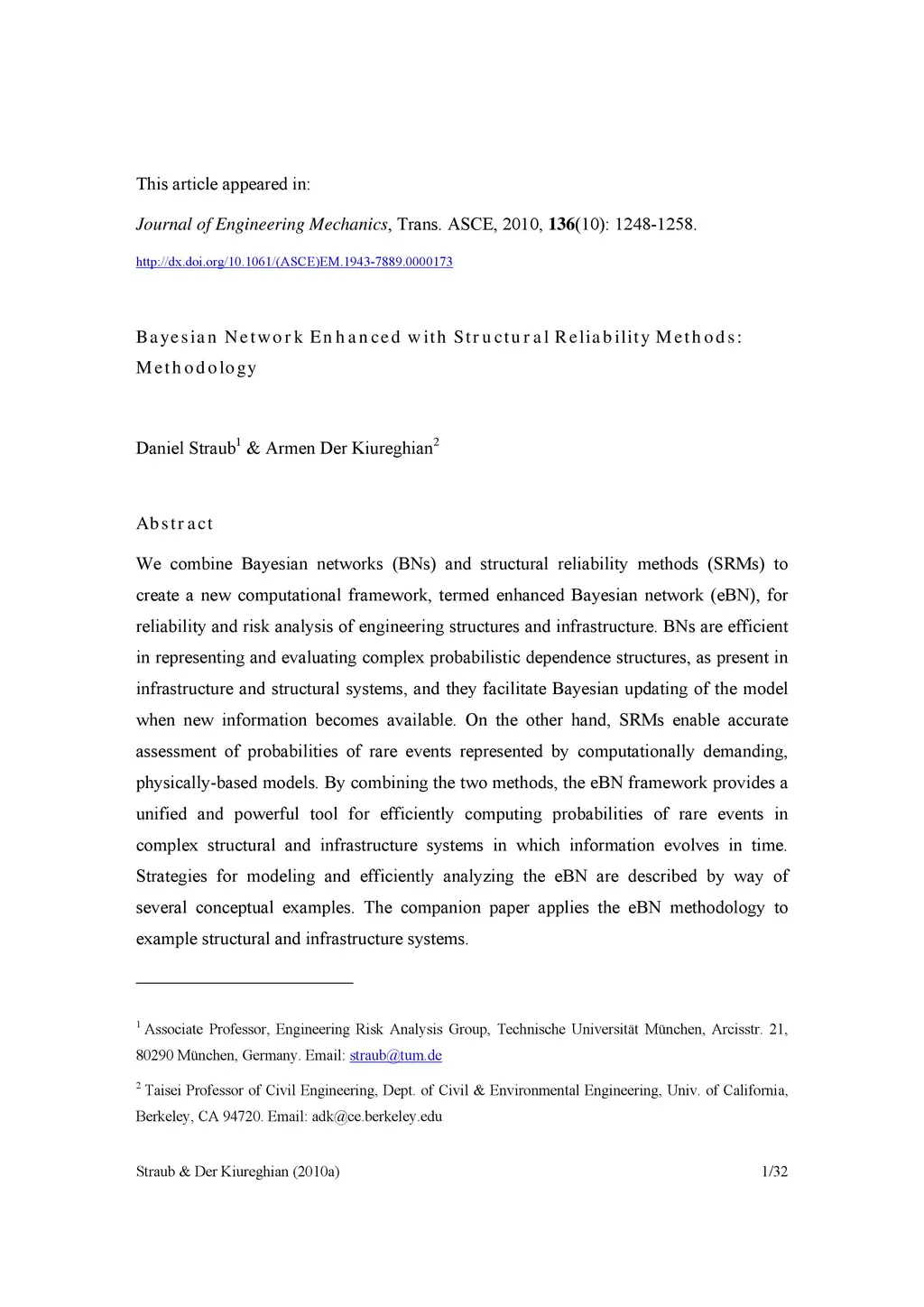 We combine Bayesian networks (BNs) and structural reliability methods (SRMs) to create a new computational framework, termed enhanced Bayesian network (eBN), for reliability and risk analysis of engineering structures and infrastructure. BNs are efficient in representing and evaluating complex probabilistic dependence structures, as present in infrastructure and structural systems, and they facilitate Bayesian updating of the model when new information becomes available. On the other hand, SRMs enable accurate assessment of probabilities of rare events represented by computationally demanding, physically-based models. By combining the two methods, the eBN framework provides a unified and powerful tool for efficiently computing probabilities of rare events in complex structural and infrastructure systems in which information evolves in time. Strategies for modeling and efficiently analyzing the eBN are described by way of several conceptual examples. The companion paper applies the eBN methodology to example structural and infrastructure systems.