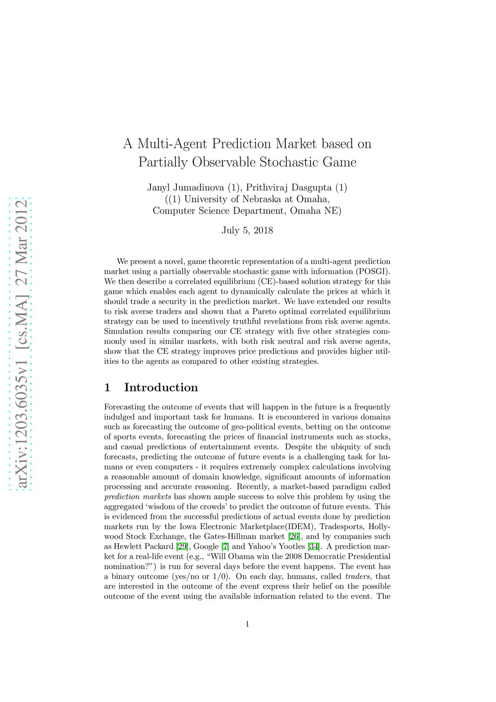 A Multi-Agent Prediction Market based on Partially Observable Stochastic