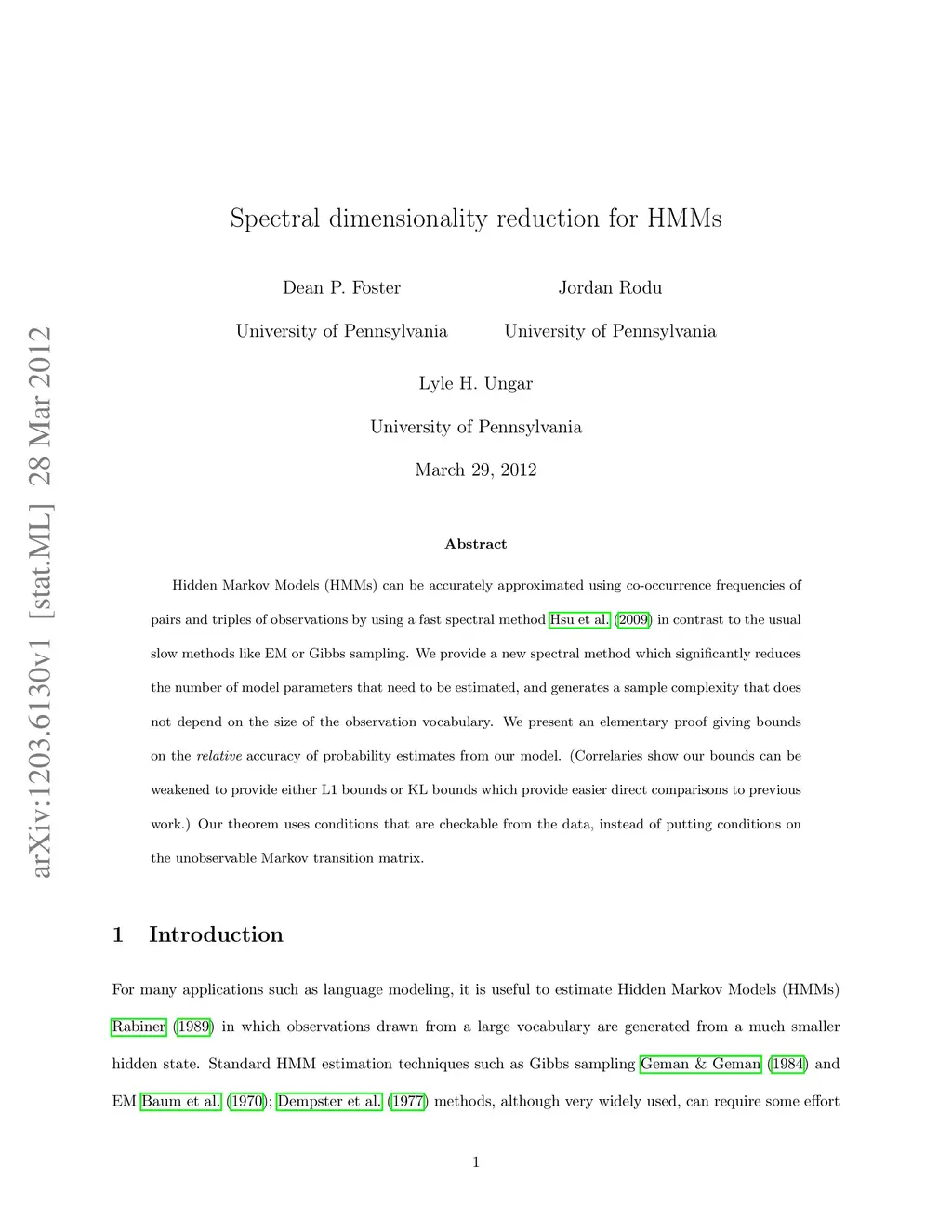 Spectral dimensionality reduction for HMMs