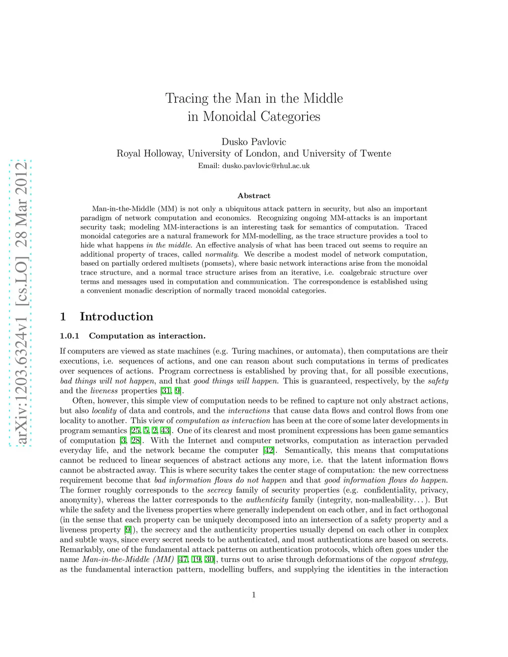Man-in-the-Middle (MM) is not only a ubiquitous attack pattern in security, but also an important paradigm of network computation and economics. Recognizing ongoing MM-attacks is an important security task; modeling MM-interactions is an interesting task for semantics of computation. Traced monoidal categories are a natural framework for MM-modelling, as the trace structure provides a tool to hide what happens *in the middle*. An effective analysis of what has been traced out seems to require an additional property of traces, called *normality*. We describe a modest model of network computation, based on partially ordered multisets (pomsets), where basic network interactions arise from the monoidal trace structure, and a normal trace structure arises from an iterative, i.e. coalgebraic structure over terms and messages used in computation and communication. The correspondence is established using a convenient monadic description of normally traced monoidal categories.